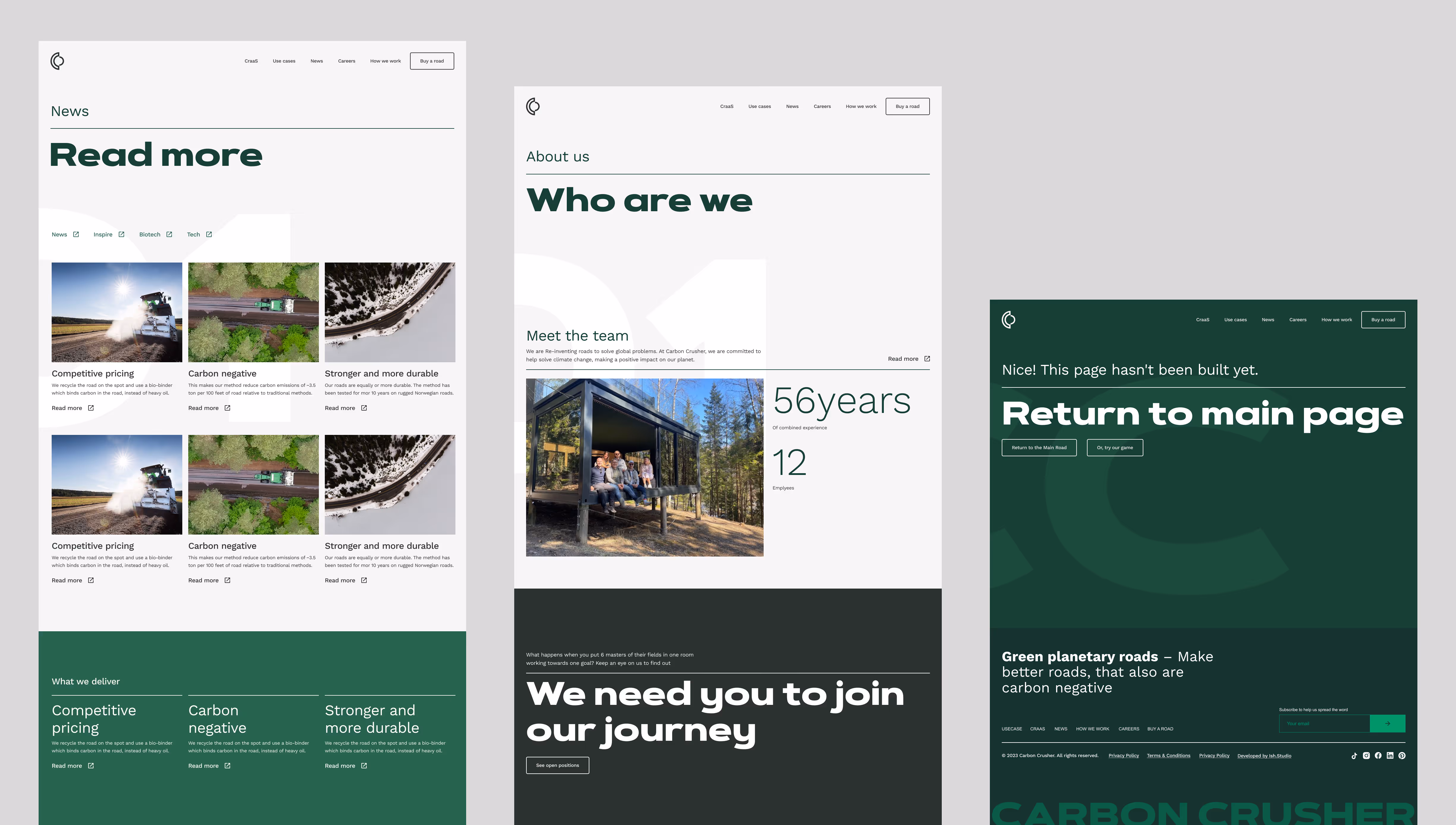 To meet these challenges, Carbon Crusher Inc turned to Ish Studio for our expertise in custom Webflow websites. The goal was to build a site that was not only visually compelling, but also a true reflection of Carbon Crusher’s ethos and innovative mindset. Our role was to deeply understand their core values and objectives, and translate them into a digital experience that was both user-friendly and impactful.